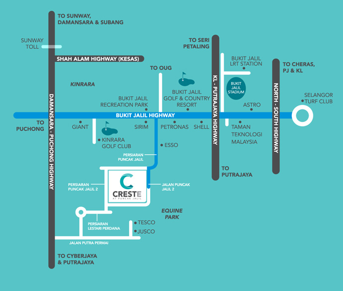 It is situated near the Technology Park Malaysia along the Puchong-Sungai Besi Highway, which has excellent connectivity to major highways and nearby townships. Adjacent townships include Bandar Kinrara, Taman Equine and Sri Kembagan, which are considered matured business and residential communities.
